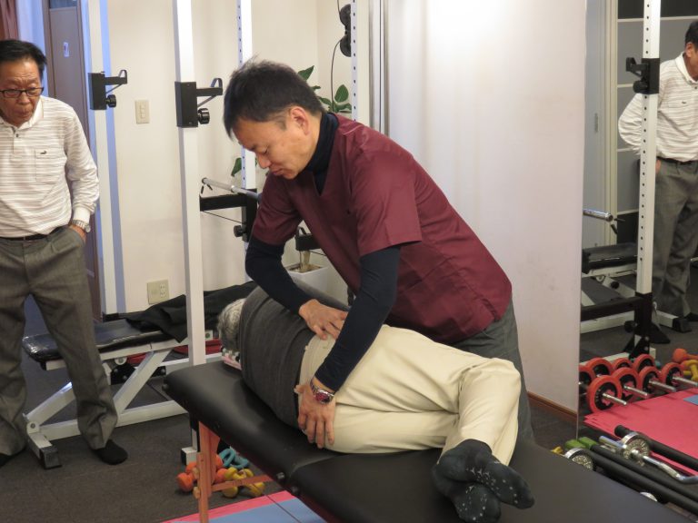 - 施術前の検査(骨盤と肩甲骨の可動域チェック)